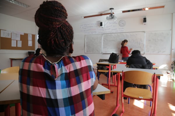 Les élèves, dans de petites classes, étudient le programme scolaire de leur filière.